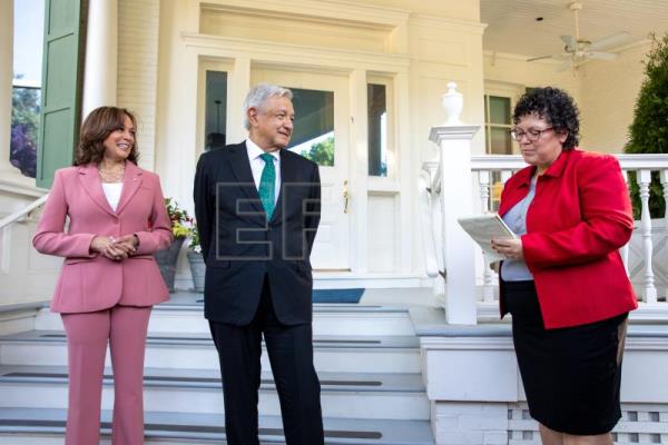 López Obrador saludó desde una ventana del hotel con el brazo y agradeció la presencia de los mexicanos, poco antes de partir hacia un desayuno con la vicepresidenta de Estados Unidos, Kamala Harris, y una posterior reunión con el presidente estadounidense, Joe Biden.