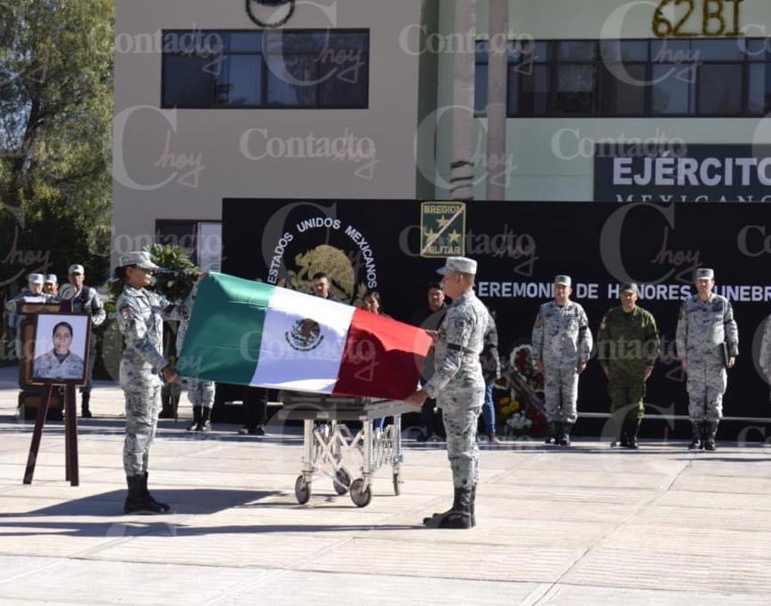 Esta mañana se realizó en el campo militar 5 de Mayo la ceremonia de honores fúnebres a Sandra Paola Rodríguez Ramos, oficial de la Guardia Nacional que perdió la vida en el operativo para la detención de Ovidio “El Ratón” Guzmán, el pasado jueves 5 de enero en la localidad de Jesús María, ubicada en el municipio de Culiacán, Sinaloa.