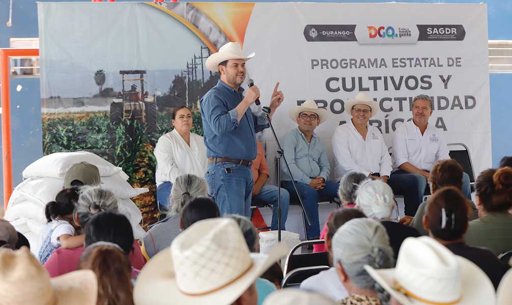 Guadalupe Victoria, Dgo.- Con la entrega de 800 toneladas de semilla de frijol en Guadalupe Victoria, para la siembra de 26 mil hectáreas, con beneficio directo para más de 6 mil familias productoras, el gobernador Esteban Villegas cumple su compromisos con el campo duranguense para que cuente con seguridad alimentaria y un incremento de la productividad en la agricultura de la región.