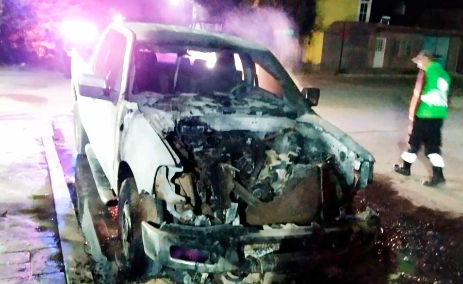 Un aparatoso incendio consumió casi por completo la camioneta de un hombre de oficio panadero que vive y trabaja en el municipio de Poanas; el hecho ocurrió a eso de las 05:00 horas de este miércoles y aún se desconocen las causas que dieron inicio al fuego.