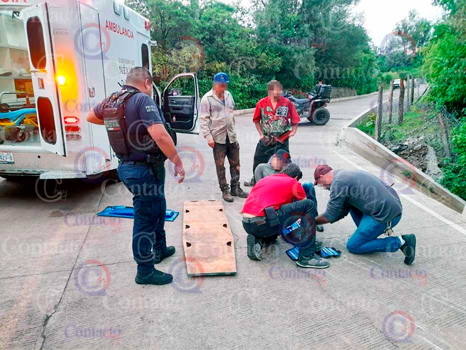 En la fuerte caída sufrió un golpe en su pierna derecha, que al ser valorada por personal médico del Hospital Integral, se diagnosticó como fractura, por lo que lo inmovilizaron y recomendaron su traslado a un centro médico especializado.