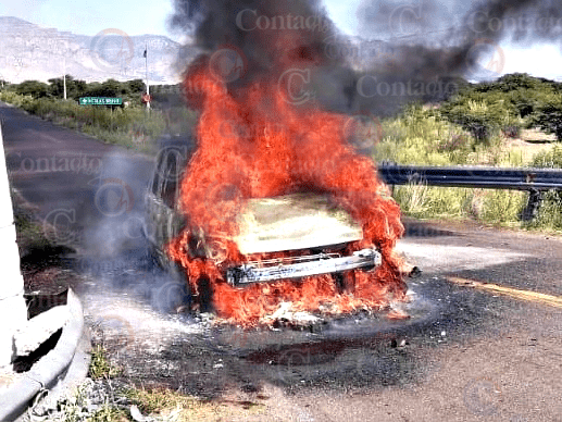 Un nuevo incendio de vehículo ocurrido en una carretera federal, derivó en la destrucción de un vehículo, cuyo propietario fue atendido por personal médico al sufrir algunas lesiones leves cuando intentaba apagar el fuego.