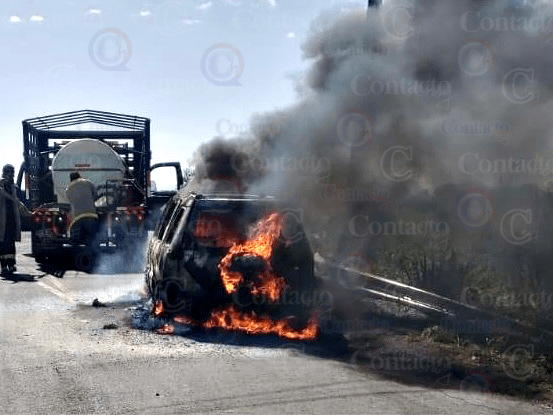 Un nuevo incendio de vehículo ocurrido en una carretera federal, derivó en la destrucción de un vehículo, cuyo propietario fue atendido por personal médico al sufrir algunas lesiones leves cuando intentaba apagar el fuego.