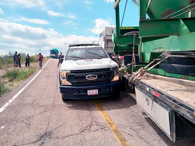 Al final, el vehículo blindado terminó impactando de costado a la carga del camión, ocasionando algunos daños también a lo que transportaba, en este caso maquinaria agrícola.