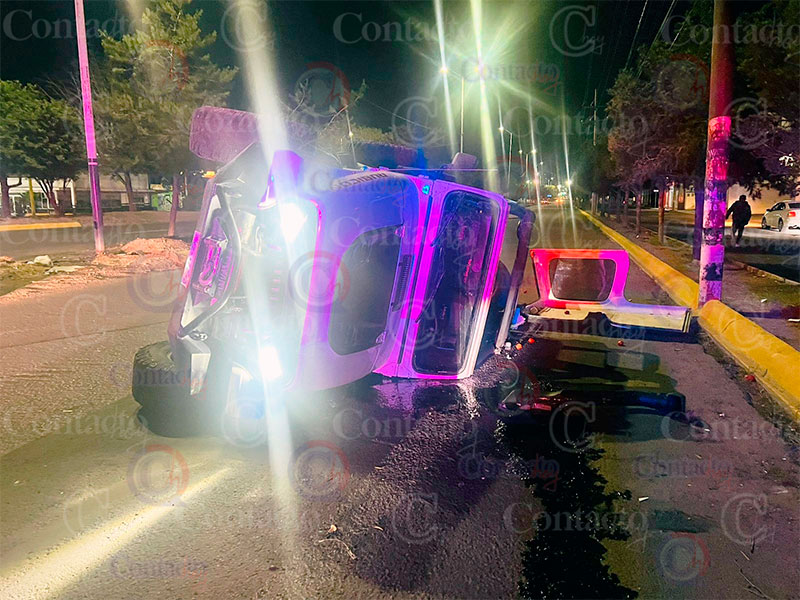 Una mujer resultó lesionada en un aparatoso accidente ocurrido durante la madrugada de este sábado en el bulevar Francisco Villa; la víctima perdió el control de la unidad al descender del puente del mismo nombre.