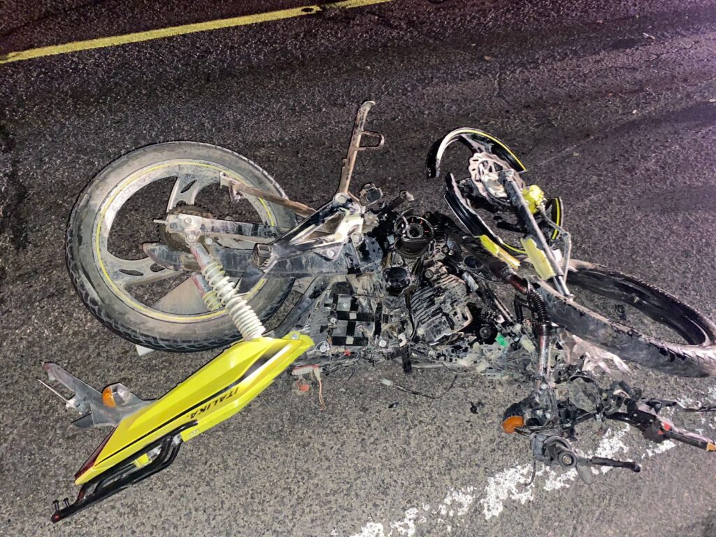 El hecho es que la camioneta golpeó de lleno a la motocicleta, a grado tal que la unidad de mayor tamaño resultó en pérdida total.