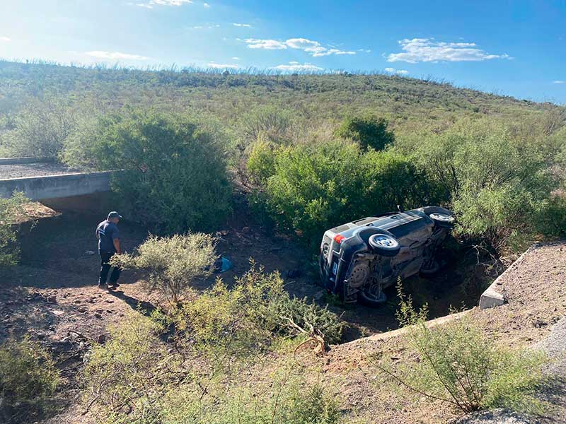 En el kilómetro 11, don Andrés perdió el control de la camioneta Ford Escape en la que viajaban de Juan Aldama a su lugar de origen y salieron del camino abruptamente. Dada la irregularidad del terreno, acabaron volcados.