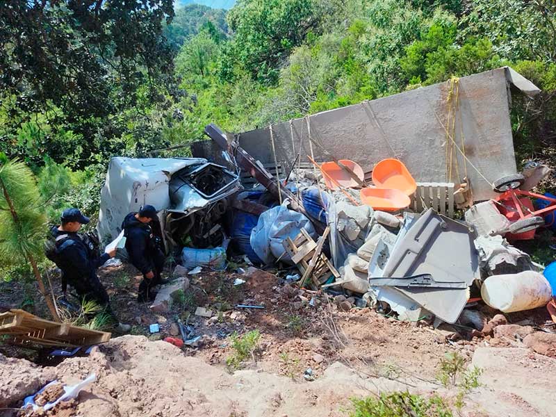 En circunstancias que aún se desconocen, el chofer perdió el control y salió del camino, lo que hizo que acabara a varios metros de profundidad en un barranco.