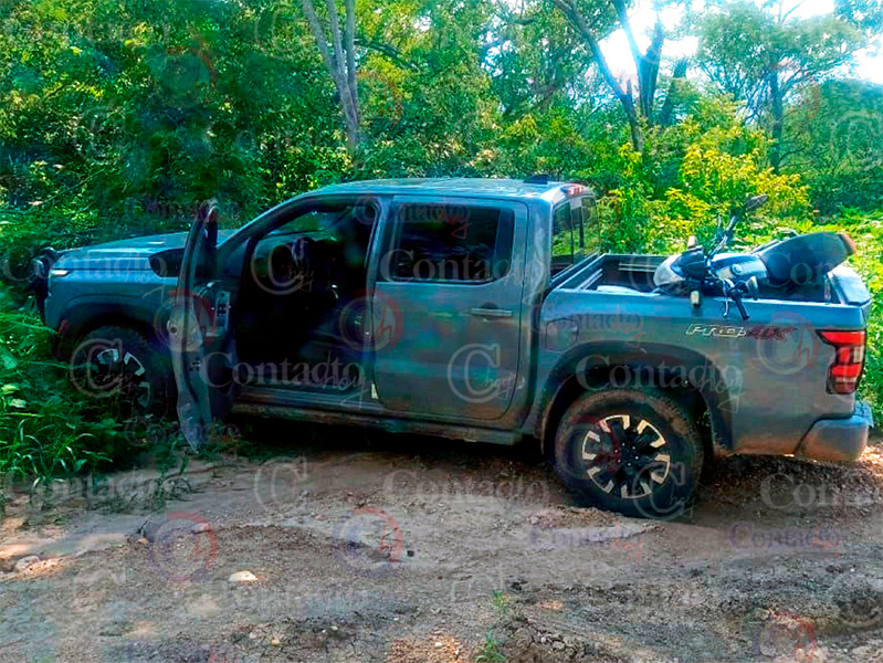 El personal tuvo a la vista una camioneta Nissan Frontier aparentemente abandonada, por lo que aplicando los protocolos correspondientes la resguardaron y procedieron a una revisión.