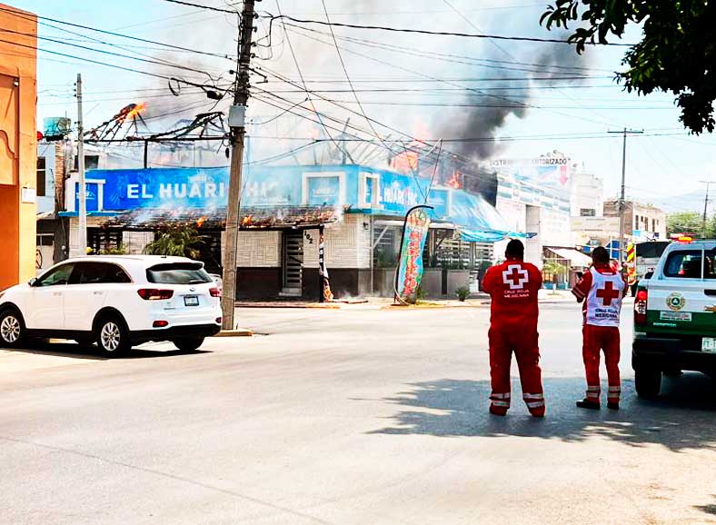 Un voraz incendio ocurrido en la zona centro del municipio de Gómez Palacio destruyó prácticamente por completo un establecimiento dedicado a la venta de alimentos, especializado en mariscos. Por fortuna, no hubo lesionados.