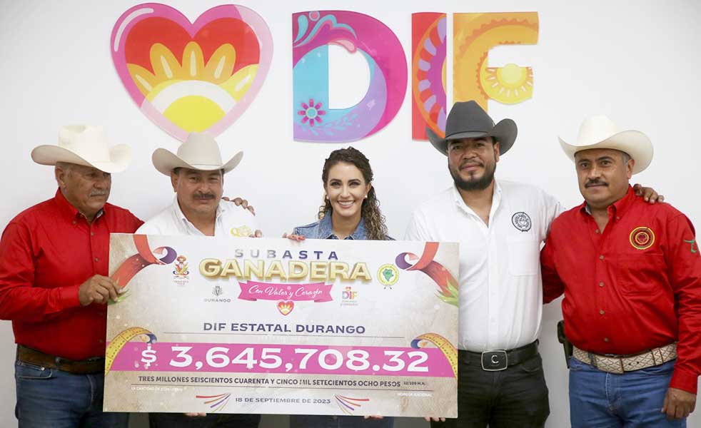 Producto de la buena voluntad de los duranguenses, la presidenta de DIF Estatal, Marisol Rosso Rivera, recibió formalmente la suma de tres millones 645 mil 708 pesos, monto recaudado de la Subasta Ganadera “Con Valor y Corazón”, que se llevó a cabo el pasado 28 de julio en la Feria Nacional Francisco Villa, el cual servirá para mejorar la calidad de vida de las niñas, niños de Casa Hogar y Centro Mi Casa.