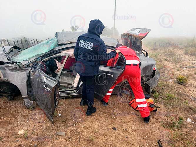 Dos mujeres lesionadas y un hombre ileso fue el resultado de una volcadura ocurrida el domingo por la tarde en la carretera Durango – Parral; el coche en el que viajaban las víctimas dio varias volteretas y acabó destruido.