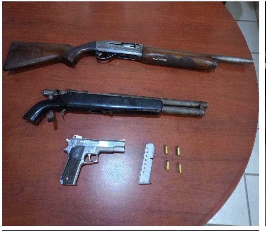 Consigo tenía una pistola tipo escuadra de la marca Smith & Wesson, con cuatro cartuchos útiles; y dos escopetas, una recortada sin marca visible y una más de la marca Remington.