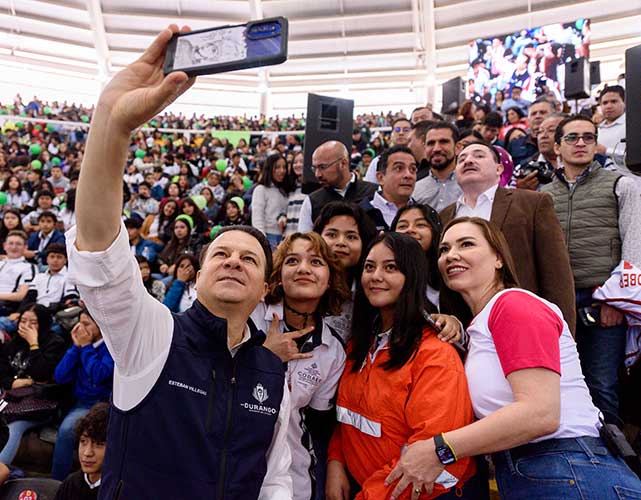 En un ambiente lleno alegría, Esteban Villegas, escuchó y se comprometió a dotar a los estudiantes de los planteles, La Forestal, Lomas, Juana Villalobos, Canatlán, Villas del Guadiana y Pino Suárez, con equipos deportivos, uniformes y balones, también con la reparación de baños y el mejoramiento de instalaciones.