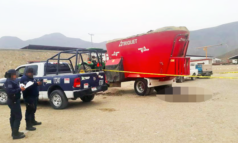 Un joven de 25 años de edad, trabajador de un rancho ganadero, murió al ser atrapado de forma accidental por una máquina mezcladora de alimento; su defunción ocurrió en cuestión de instantes, dado el poder de dicho artefacto.