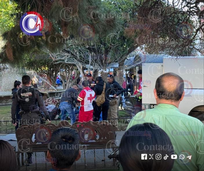 La víctima fue identificada como Luis Venegas Venegas de 69 años de edad, y perdió la vida mientras se encontraba sentado en una banca de madera cercana al banco Bancomer, a pocos metros de la esquina de 20 de Noviembre y Constitución.