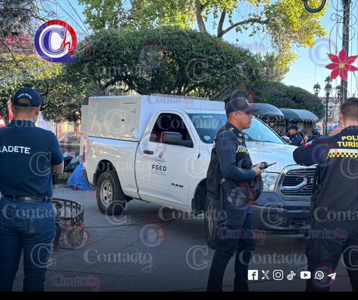 La víctima fue identificada como Luis Venegas Venegas de 69 años de edad, y perdió la vida mientras se encontraba sentado en una banca de madera cercana al banco Bancomer, a pocos metros de la esquina de 20 de Noviembre y Constitución.