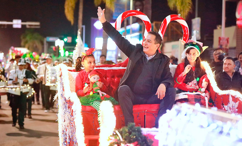 “Llegó la Navidad a Durango, nuestra casa, que celebra en grande la unión familiar”, expresó Toño Ochoa en el desfile “Navidad por el Mundo”, que encantó a las cientos de familias en su recorrido por la avenida 20 de Noviembre.
