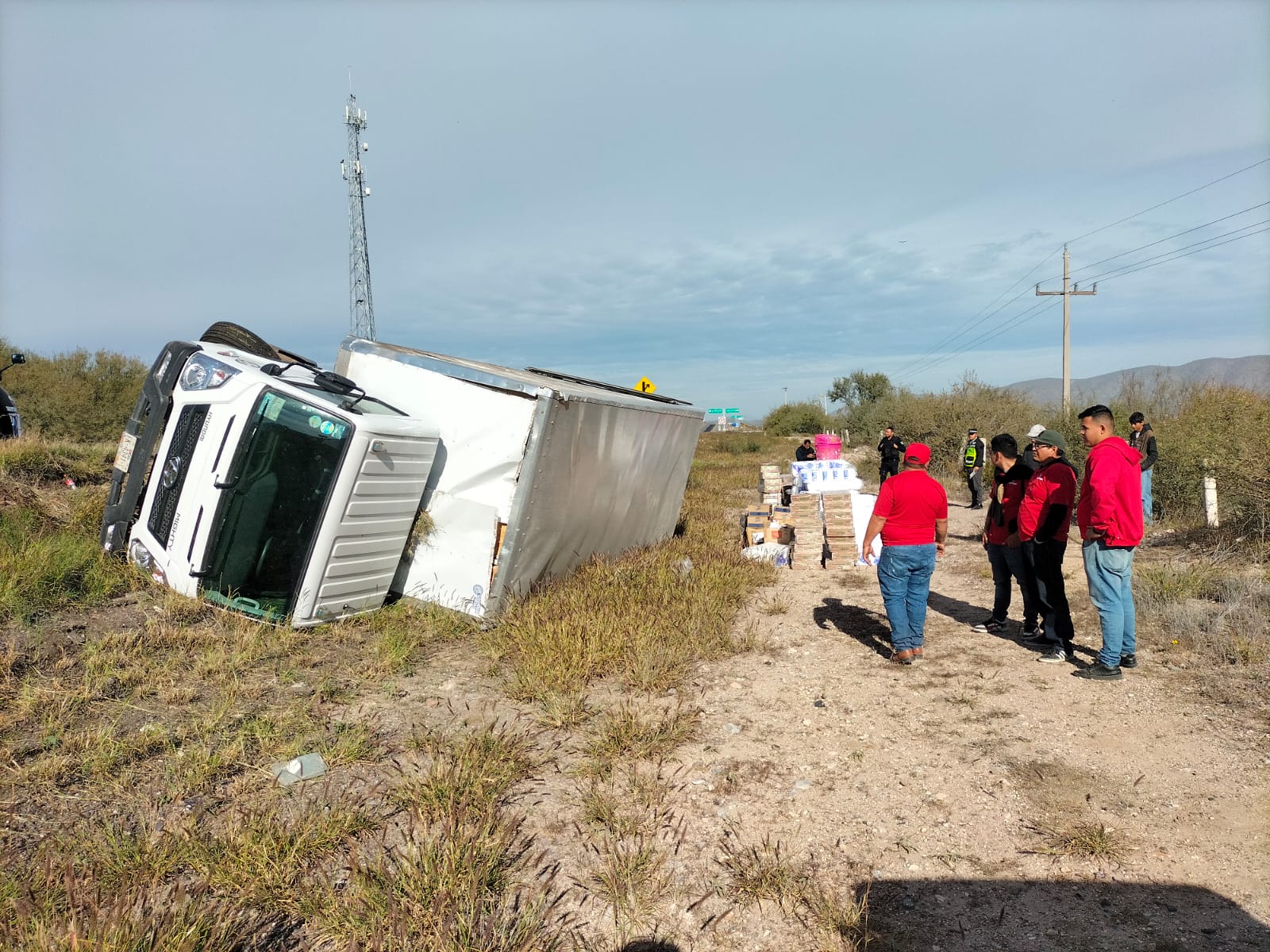 Un camión perteneciente a una empresa abarrotera acabó volcado a raíz de una invasión de carril, en la que el operador prefirió evitar un choque de frente que terminar fuera del camino; por fortuna, las lesiones de la víctima fueron leves.