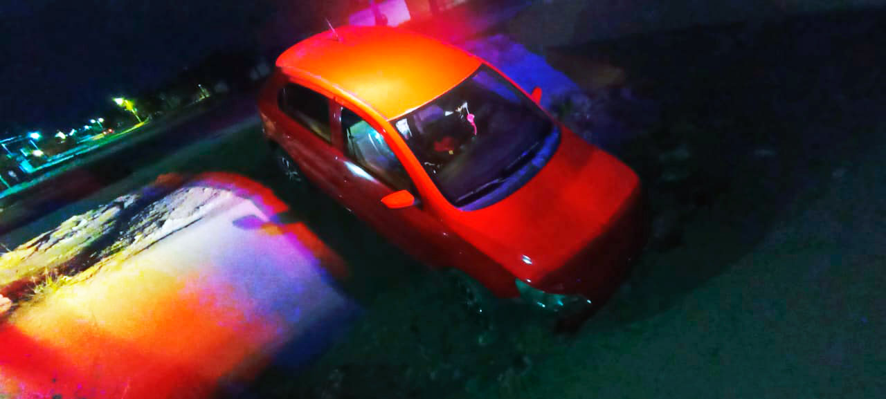Una automovilista que circulaba de madrugada por las inmediaciones del fraccionamiento Pirineos, en la zona oriente de la ciudad, acabó al fondo de un canal pluvial a causa de una pérdida de visibilidad que le impidió ver la irregularidad del terreno.