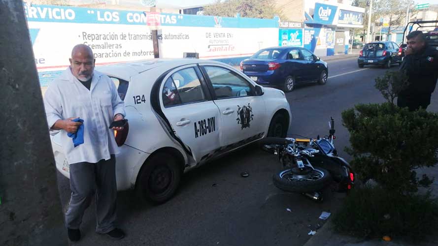Un motociclista resultó con lesiones leves a raíz de un hecho de tránsito ocurrido cuando la persona que viajaba como pasajera de un taxi abrió su puerta de forma repentina; el incidente ocurrió justo donde se dividen las colonias Santa Fe y del Maestro.