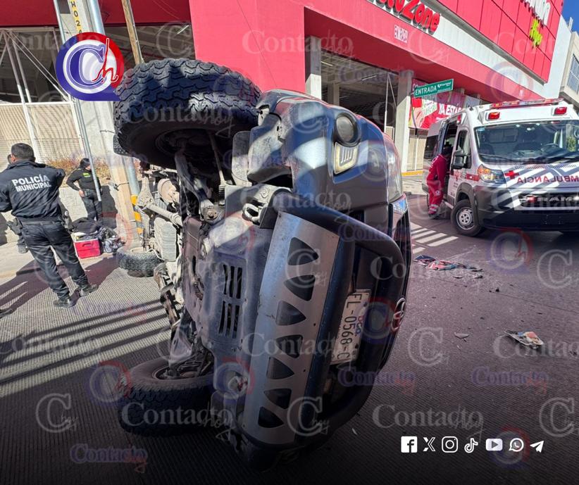 Tres personas resultaron con lesiones leves en una volcadura ocurrida este miércoles por la mañana en el bulevar Guadiana, justo al exterior de un centro comercial; el incidente habría sido ocasionado por un derrame de aceite o manteca.