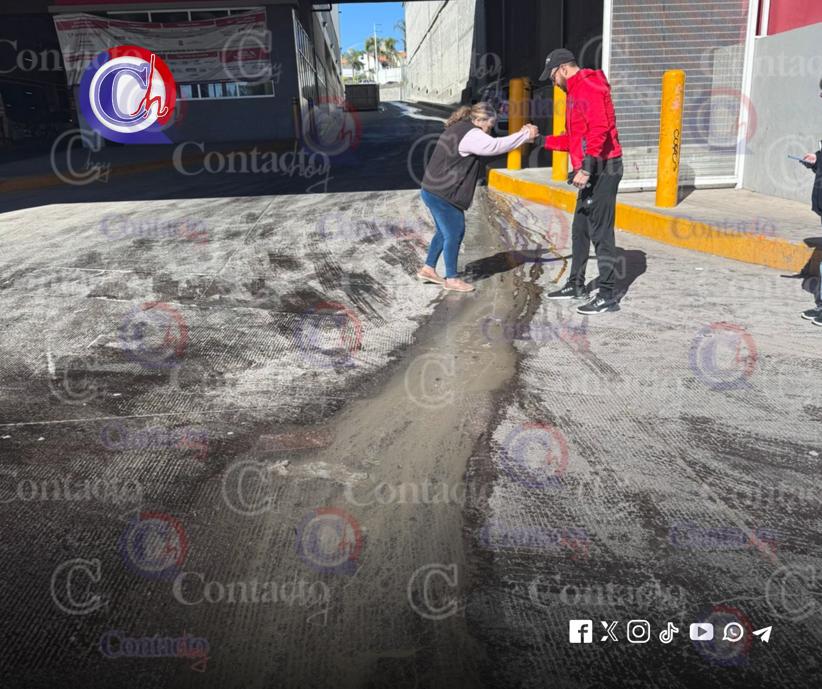 Dicha circunstancia fue provocada por un derrame que tenía su origen en un contenedor ubicado en las instalaciones del Centro Comercial Soriana, aunque no se identificó qué tipo de sustancia era.