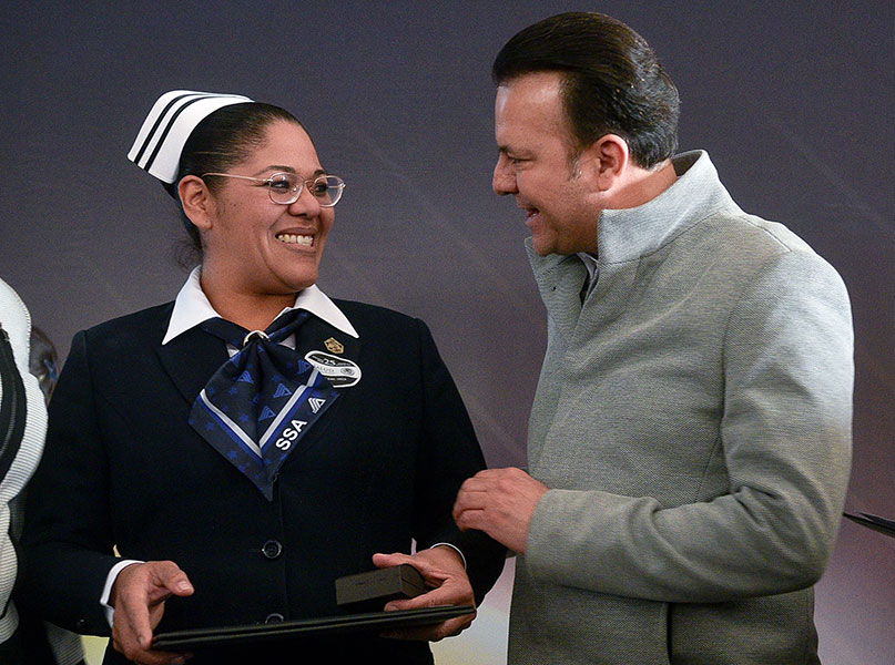 “Los trabajadores de la Secretaría de Salud necesitábamos a alguien como Esteban Villegas, que supiera del tema, pero sobre todo que fuera muy humano y que al lado tuviera una gran mujer como es Marisol, con ese corazón tan grande que nos motivan a echarle más ganas”, expresó Teresa García Galindo, colaboradora del Patrimonio de la Beneficencia Pública de la Secretaría de Salud del Estado, durante la entrega de reconocimientos y estímulos económicos a quienes cumplieron desde 20 hasta 55 años en servicio.