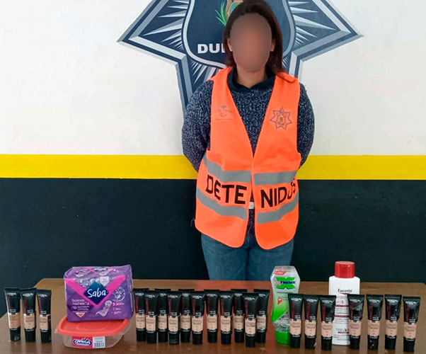 Más de 7 mil pesos en maquillaje y un paquete de toallas femeninas fue lo robado por una mujer de 30 años de edad en un centro comercial, lo que derivó en su detención a manos de la Policía Municipal capitalina.