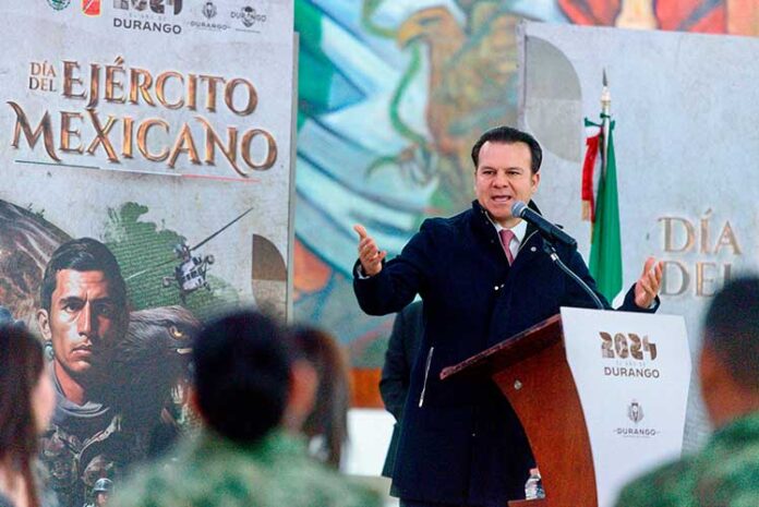 Durango no se podría concebir en este momentos sin la ayuda del Ejército Mexicano y después de haber vivido momentos complejos, ahora la sociedad está tranquila, segura y en paz, aseguró el Mandatario Estatal al encabezar los actos conmemorativos; primero con el depósito de una ofrenda floral en el monumento al Defensor de la Patria y después, celebrar junto al personal militar, a quienes reconoció su esfuerzo y dedicación.