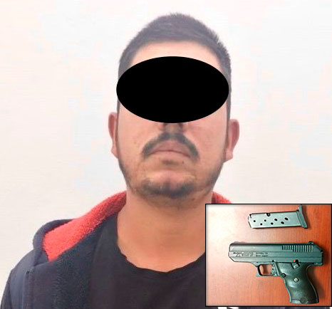 Elementos de la Policía Estatal detuvieron en la ciudad de Durango a un sujeto que tenía en su poder una pistola calibre .9 mm, por cuya portación no tenía aval oficial alguno.