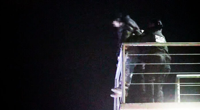 Dos oficiales llegaron hasta el muchacho y lograron sujetarse a él cuando ya estaba sobre la escalinata que debía cruzar para saltar al vacío y lo evitó; luego de ello, fue auxiliado para descender del sitio.