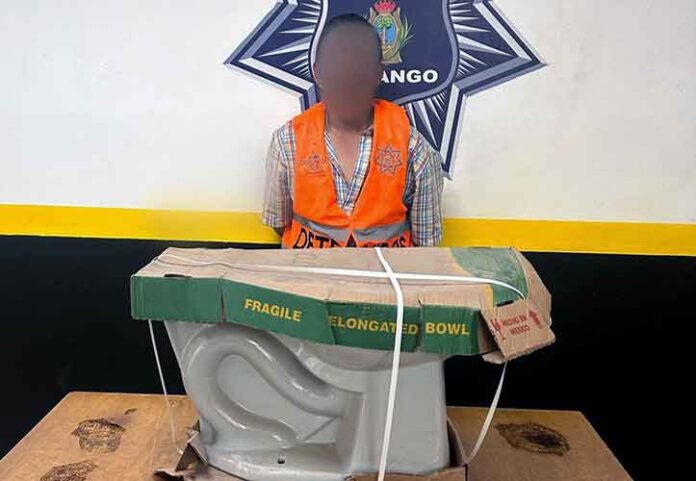 Elementos de la Policía Municipal detuvieron a un sujeto que acababa de robar un inodoro nuevo de una finca en construcción; el tipo podría estar ligado a una serie de robos reportados en los alrededores del poblado Sebastián Lerdo de Tejada y el fraccionamiento Las Villas.