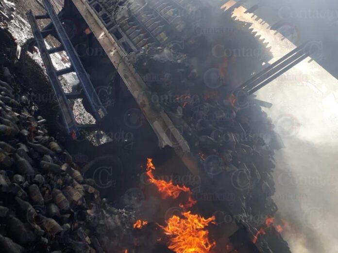 Un aparatoso incendio ocurrido el lunes en la Supercarretera Durango – Mazatlán derivó en daños materiales de consideración, entre los que se encuentra la destrucción de cientos de cervezas de las conocidas como “huevos de toro”.