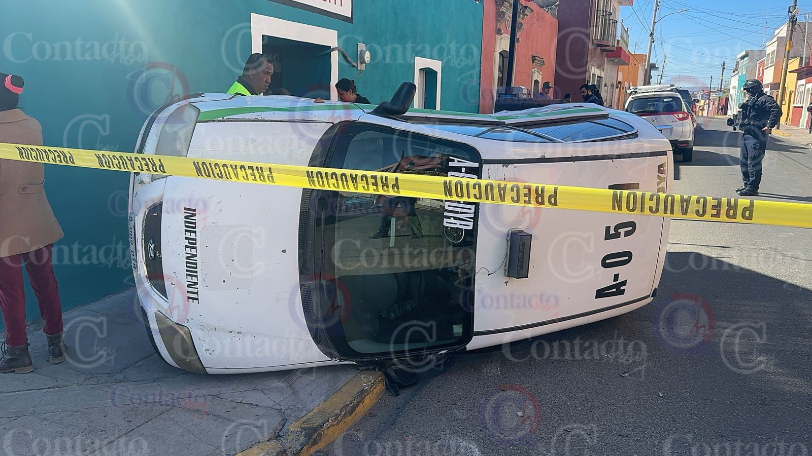Fue un taxi independiente, con matrícula A-889-DYB, el que acabó sobre uno de sus costados a raíz del fuerte impacto, que incluso lo proyectó contra la fachada de un inmueble habilitado como tortillería.