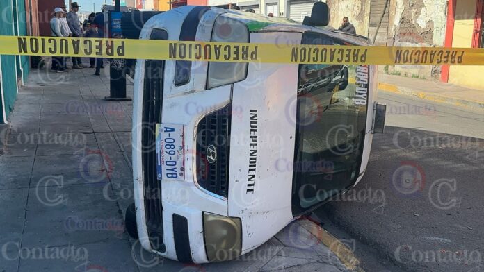 Un par de personas lesionadas, por fortuna no de gravedad, es el resultado de un accidente ocurrido este miércoles por la mañana en el barrio de Tierra Blanca, hecho en el que una de las dos unidades siniestradas acabó volcada.