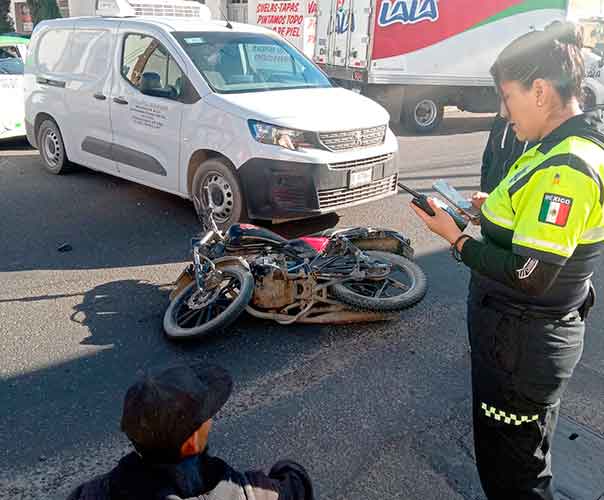 El incidente ocurrió cuando el motociclista circulaba de poniente a oriente por la calle Pino Suárez del centro de la ciudad, con preferencia de paso. Al llegar a Regato, se encontró con el segundo vehículo y se impactó en su costado.