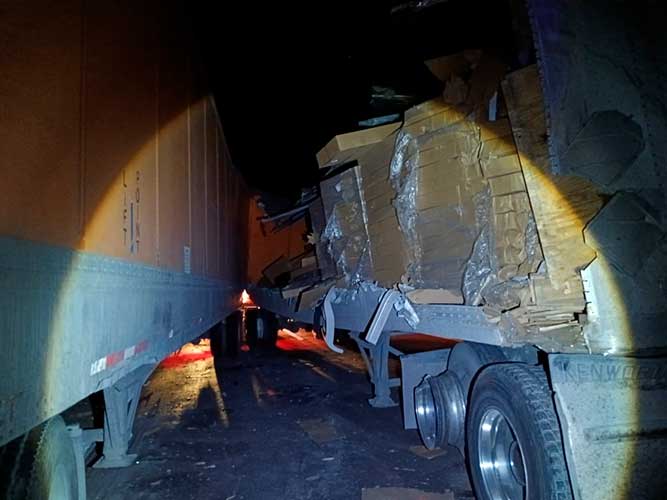 Un par de tráileres protagonizaron un aparatoso accidente de tránsito, en el que ambos resultaron con daños muy significativos; fue la descompostura de uno de ellos y su insuficiente señalización lo que derivó en el percance en el que, por fortuna, no hubo lesionados de consideración.