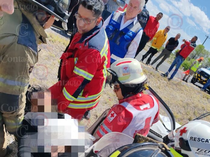 Una mujer se encuentra muy grave luego de ser víctima de un fuerte accidente de tránsito al circular por la carretera libre Durango – Gómez Palacio; según sus familiares, un bache fue el causante del hecho de tránsito.