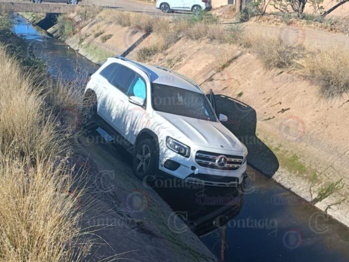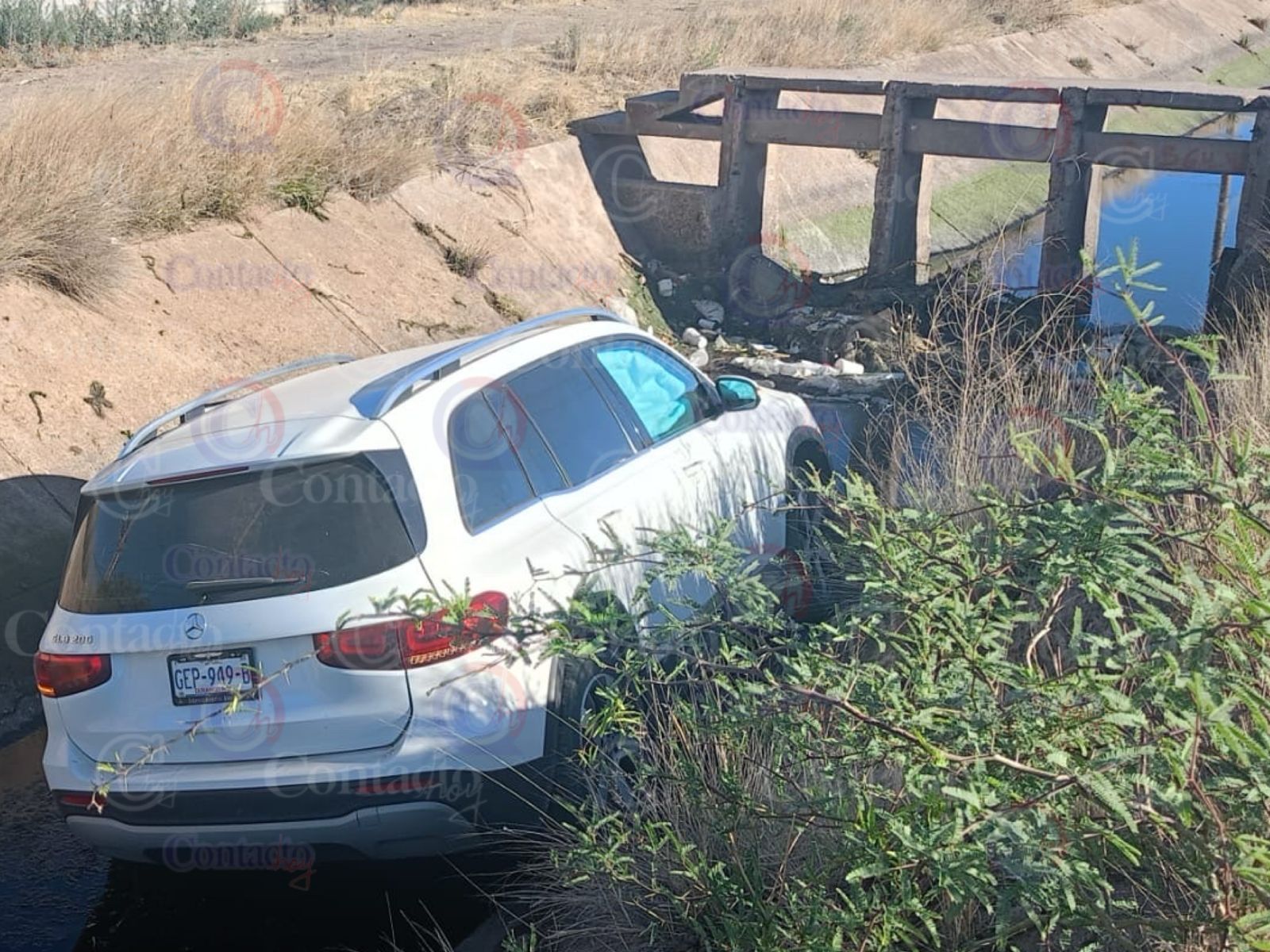 Una camioneta de lujo resultó con daños significativos luego de caer al canal de riego que bordea la vialidad Naranjo,en la zona sur de la capital del estado; por fortuna, todo quedó en daños materiales.