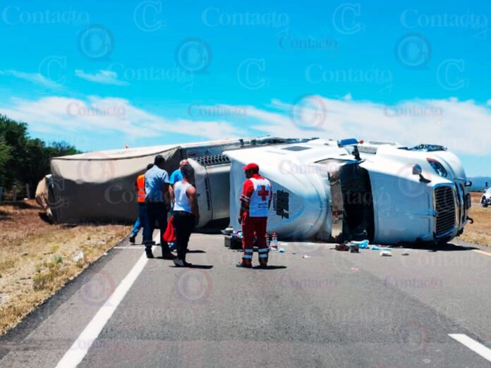 Justo a la altura del kilómetro 105, perdió el control de la unidad motriz y terminó volcado sobre la cinta asfáltica; por fortuna, la cabina lo protegió y no sufrió más allá de algunas contusiones.