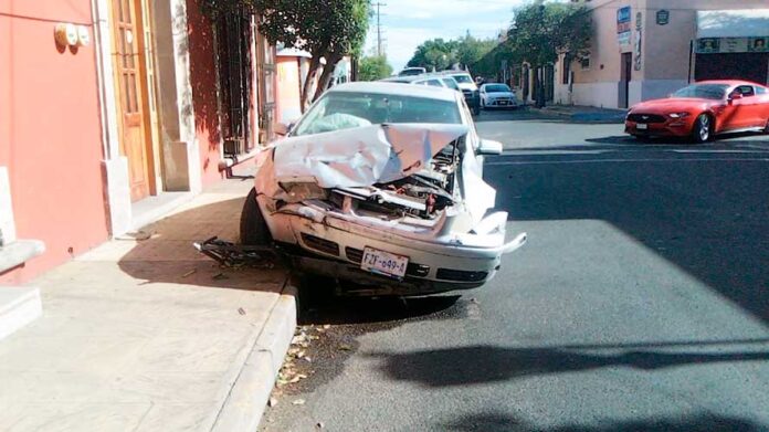 Un aparatoso accidente de tránsito ocurrido este miércoles por la mañana en un céntrico crucero dejó daños significativos en un par de vehículos; el hecho se derivó de una pasada de luz roja.