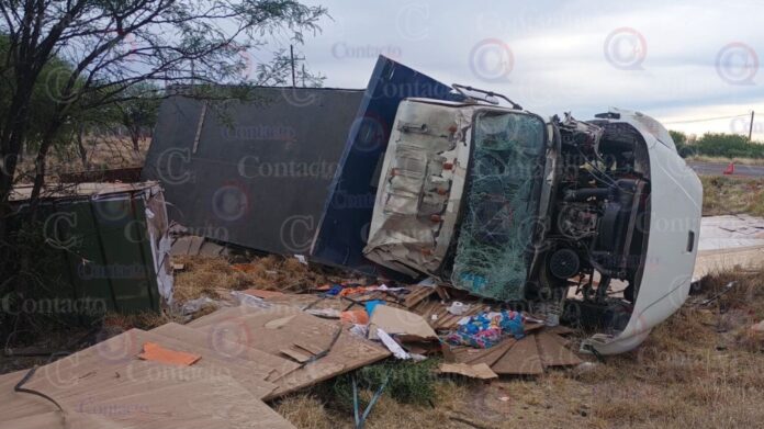 Un chofer originario de Jalisco salió con golpes leves del aparatoso accidente de tránsito en el que el camión que operaba se volcó en el tramo Durango – Nombre de Dios de la carretera a Zacatecas.