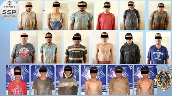 Los detenidos, originarios de Gómez Palacio, son:: Jesús “N” de 18 años de edad, Javier “N” de 15 años de edad, Luis “N” 51 años de edad, Jesús “N” 16 años de edad, Roberto “N” de 16 años de edad, Luis “N” de 42 años de edad, Mario “N” de 20 años de edad, Jonathan “N” de 26 años de edad, Javier “N” de 42 años de edad, Carmen “N” 40 años de edad, Luis “N” 16 años de edad, Jesús “N” de 16 años de edad, Erick “N” de 20 años de edad, Alfonso “N” de 42 años de edad, Luis “N” de 18 años de edad, Edmundo “N” de 40 años de edad, Javier “N” de 20 años de edad y Pedro de 57 años de edad.