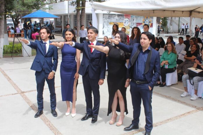 El rector Rubén Solís Ríos presidió la ceremonia de toma de protesta del nuevo comité ejecutivo de la sociedad de alumnos de la Facultad de Ciencias Químicas campus Durango. Leonardo Álvarez Bárcena asumió el liderazgo de este comité, que integran 30 personas más, y recibió el respaldo del rector para llevar a cabo su proyecto de construcción de una segunda planta en el edificio de la biblioteca y un domo, propuestas que formaron parte de su plataforma durante la campaña electoral.