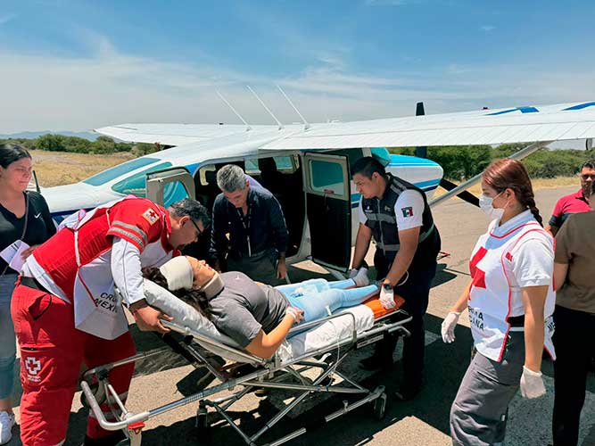 Después, a bordo de una aeronave privada, la trajeron a la ciudad de Durango y, en el aeropuerto, personal de la Cruz Roja Mexicana y Coordinación Estatal de Protección Civil se hicieron cargo de los procedimientos en tierra.