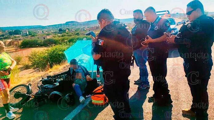 Un adulto y su hijo de 5 años de edad resultaron lesionados al caer de la motocicleta en la que circulaban por el Periférico de la ciudad de Durango; aunque ambos fueron trasladados a un hospital, fueron reportados fuera de peligro.