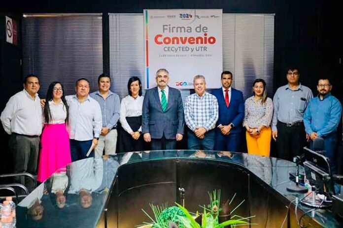 El Colegio de Estudios Científicos y Tecnológicos del Estado de Durango (CECyTED) firma convenio con la Universidad Tecnológica de Rodeo (UTR), la finalidad del acuerdo es establecer las bases conforme a las cuales ambas partes desarrollen actividades en conjunto de vinculación, académicas, de investigación, certificación y difusión de la cultura y deporte, a través del aprovechamiento de los recursos humanos y materiales de ambas instituciones, así lo detalló el director general del CECyTED, Cuauhtémoc Armas Enríquez.