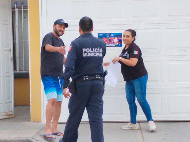 La actividad se centró en colocar calcomanías y pendones con la leyenda “vecino vigilante” en las casas del fraccionamiento. Esta estrategia, aprobada por los propios vecinos, busca inhibir la comisión de delitos y faltas administrativas.