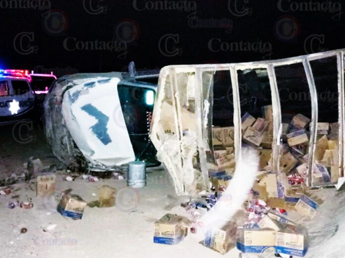 Una camioneta cargada con electrolitos orales que eran trasladados de Chihuahua a Nuevo León, se volcó en territorio duranguense, lo que desató actos de rapiña por parte de lugareños y personas que pasaban por la zona.